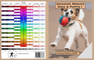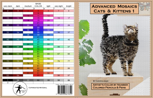 You can also use your existing Pens and Pencils for the Mosaics. Color a swatch of each of your Pens or Pencils onto a white sheet of paper, fold the paper down the center of the swatches and move the swatches over a copy of the Color Map on the back of the Mosaic book to find the closest match. It doesn't need to be an exact match, it just needs to be close.