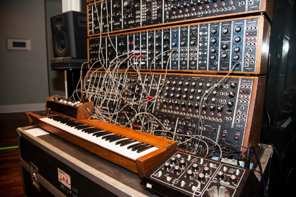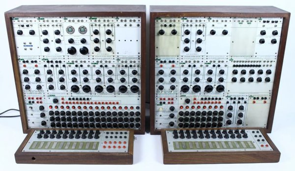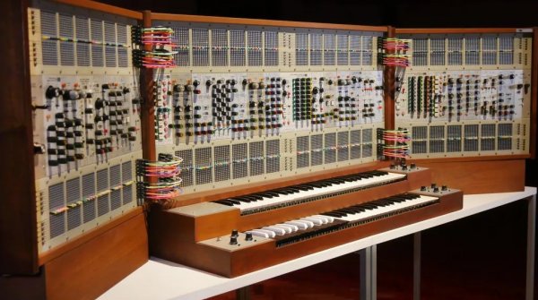 The first well known music synthesizers were the large Modular Synthesizers of the 1950’s and 60’s. They were constructed from a set of basic modules, including Oscillators, Mixers, Filter modules, Amplifiers, LFOs, Envelope Generators, maybe a few effects like a Reverb Unit or a Ring Modulator, and maybe an 8 or 16 step sequencer for arpeggios. The modules were mounted in a rack or case with a separate keyboard, and connected to form an instrument using telephone-exchange like patch chords. The first ones in the late 1950’s were huge, they took up and entire wall and were only available at large institutions like RCA Labs.